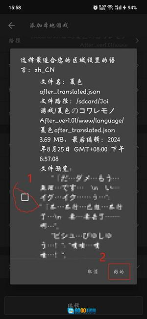 5、完成选择后会回到最初添加游戏时的界面,接着点击语言栏最右侧带有查找标识的图标。随后会弹出语言选择弹窗,按照图示操作:先点击左侧的复选框进行选中,再点击右下角的“好的”按钮确认即可。