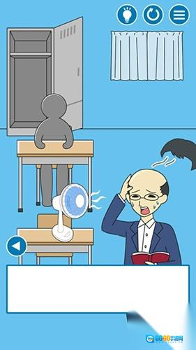 观察教室里的各类场景元素,点击可以互动的物品,解决老师因风扇等物品引发的困扰,以此推动流程向前发展。