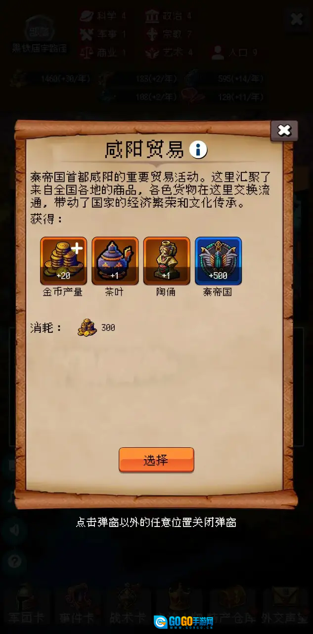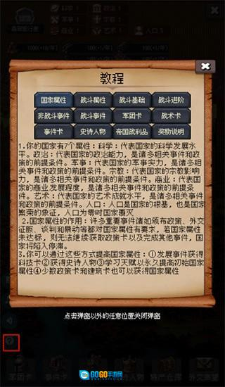 3、上方显示了国家的各种属性数值,当人口为零时,国家将会灭亡