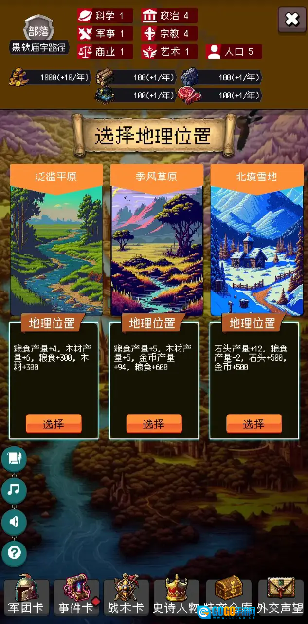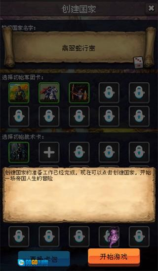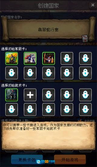 1、玩家需要创建自己的国家,之后玩家可以携带一些卡牌作为初期助力带入游戏