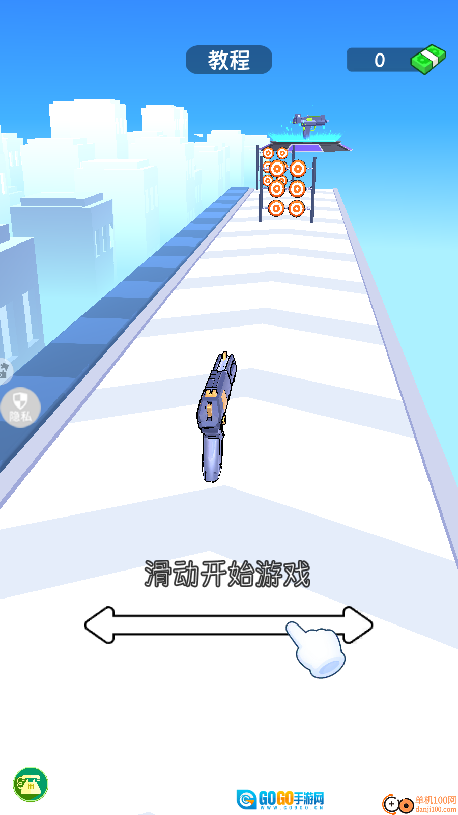 1、进入真实枪械模拟就可以现实操作提示,可以在游戏滑动屏幕开始游戏