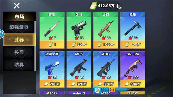 进入游戏后,点击市场按钮,即可购买各类武器、头盔与护甲。