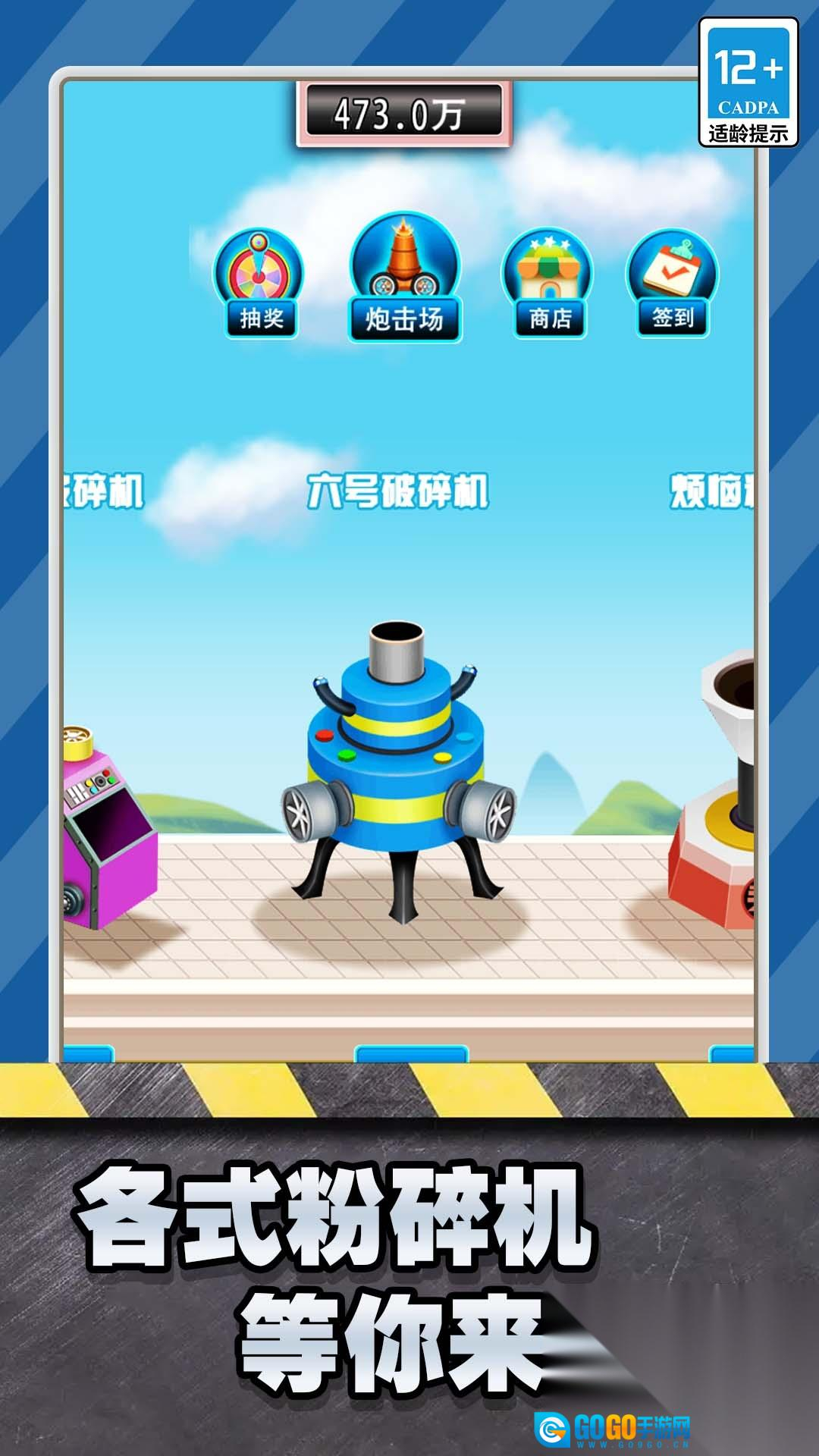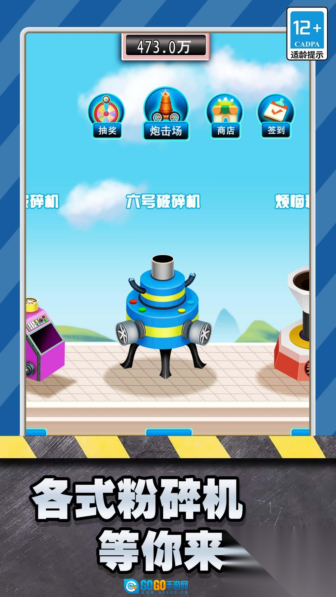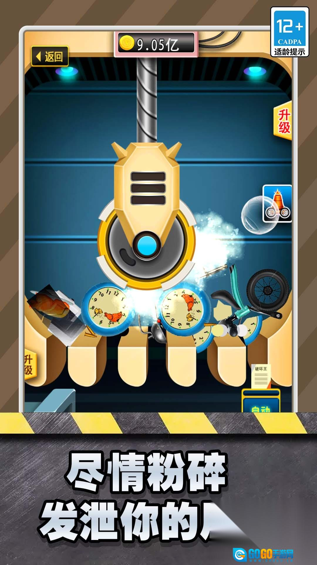 【创新玩法打造解压利器】持续升级粉碎机解锁更多粉碎可能,无时间束缚、无规则限制,尽情释放压力环顾四周,既没遇到心仪的另一半,也没实现财富自由,是不是总觉得心头压着块石头,动不动就想发脾气?要是有个不用花钱的“情绪出口”就好了——能让你把所有烦闷都一股脑儿砸进去、碾成渣,彻底释放破坏欲。正好有款游戏能满足你:它自带独特的解压装置,随时能让你把压力“碎”个精光,玩一次就上头,越玩越停不下来!