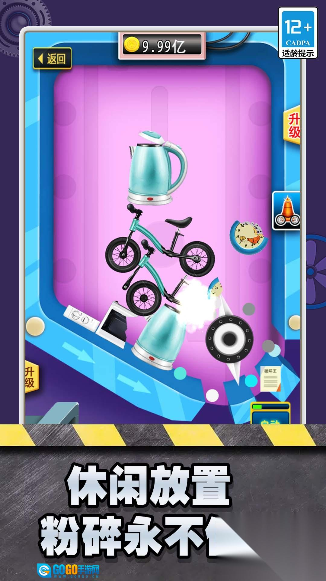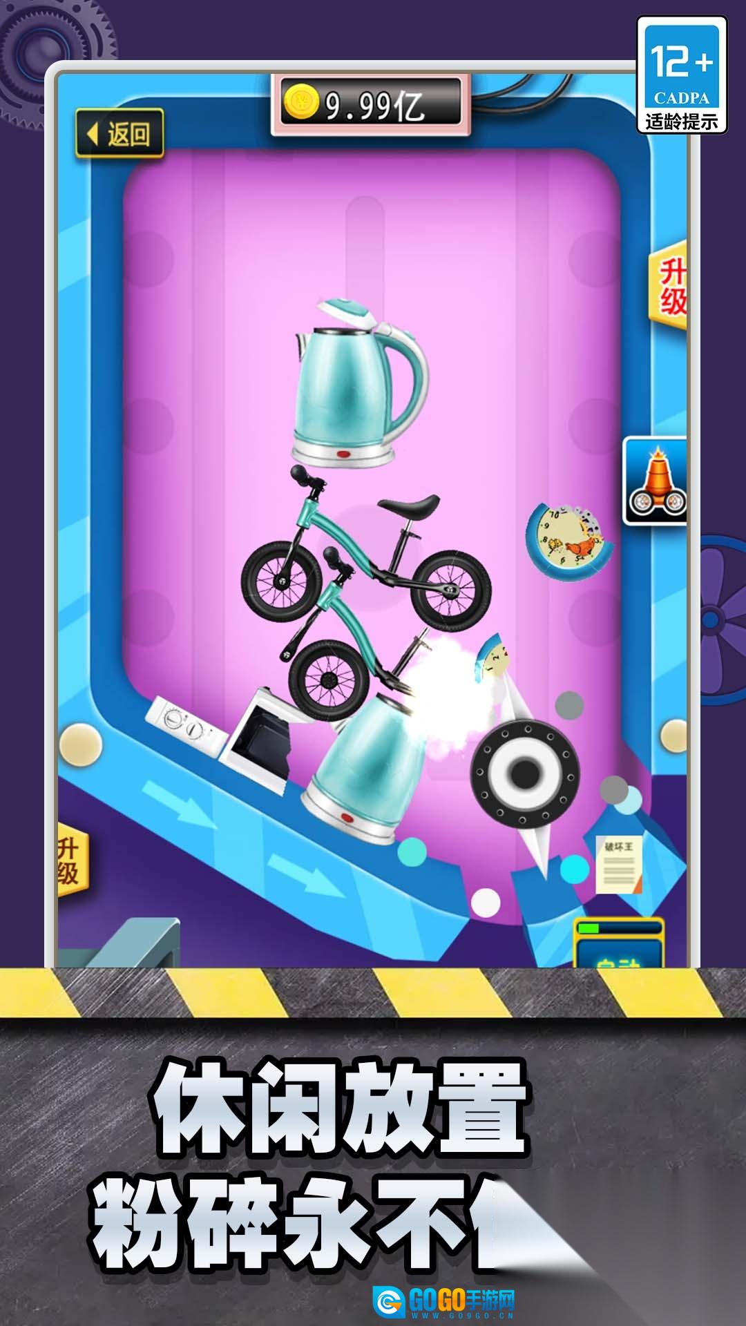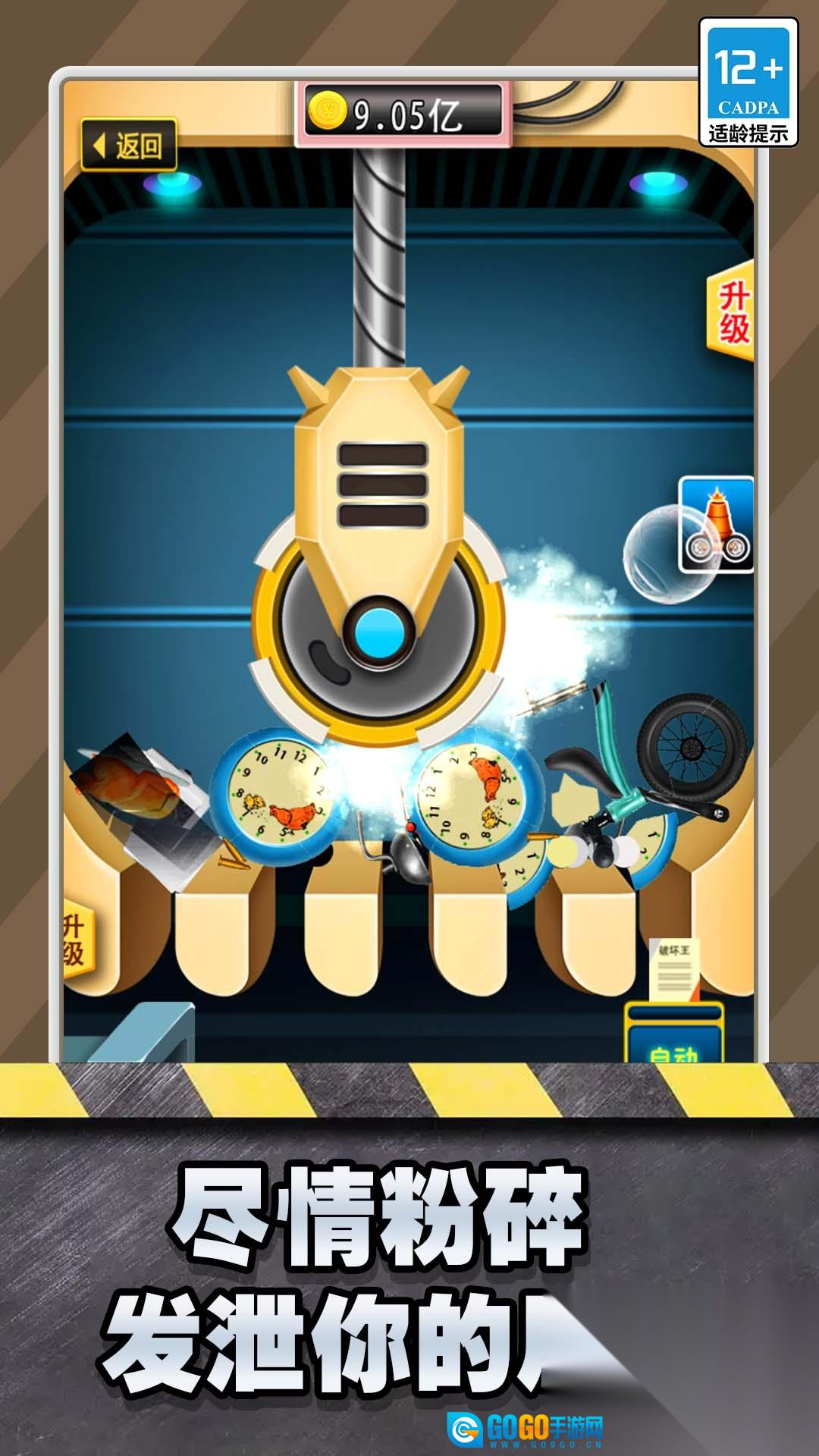 【创新玩法打造解压利器】持续升级粉碎机解锁更多粉碎可能,无时间束缚、无规则限制,尽情释放压力环顾四周,既没遇到心仪的另一半,也没实现财富自由,是不是总觉得心头压着块石头,动不动就想发脾气?要是有个不用花钱的“情绪出口”就好了——能让你把所有烦闷都一股脑儿砸进去、碾成渣,彻底释放破坏欲。正好有款游戏能满足你:它自带独特的解压装置,随时能让你把压力“碎”个精光,玩一次就上头,越玩越停不下来!
