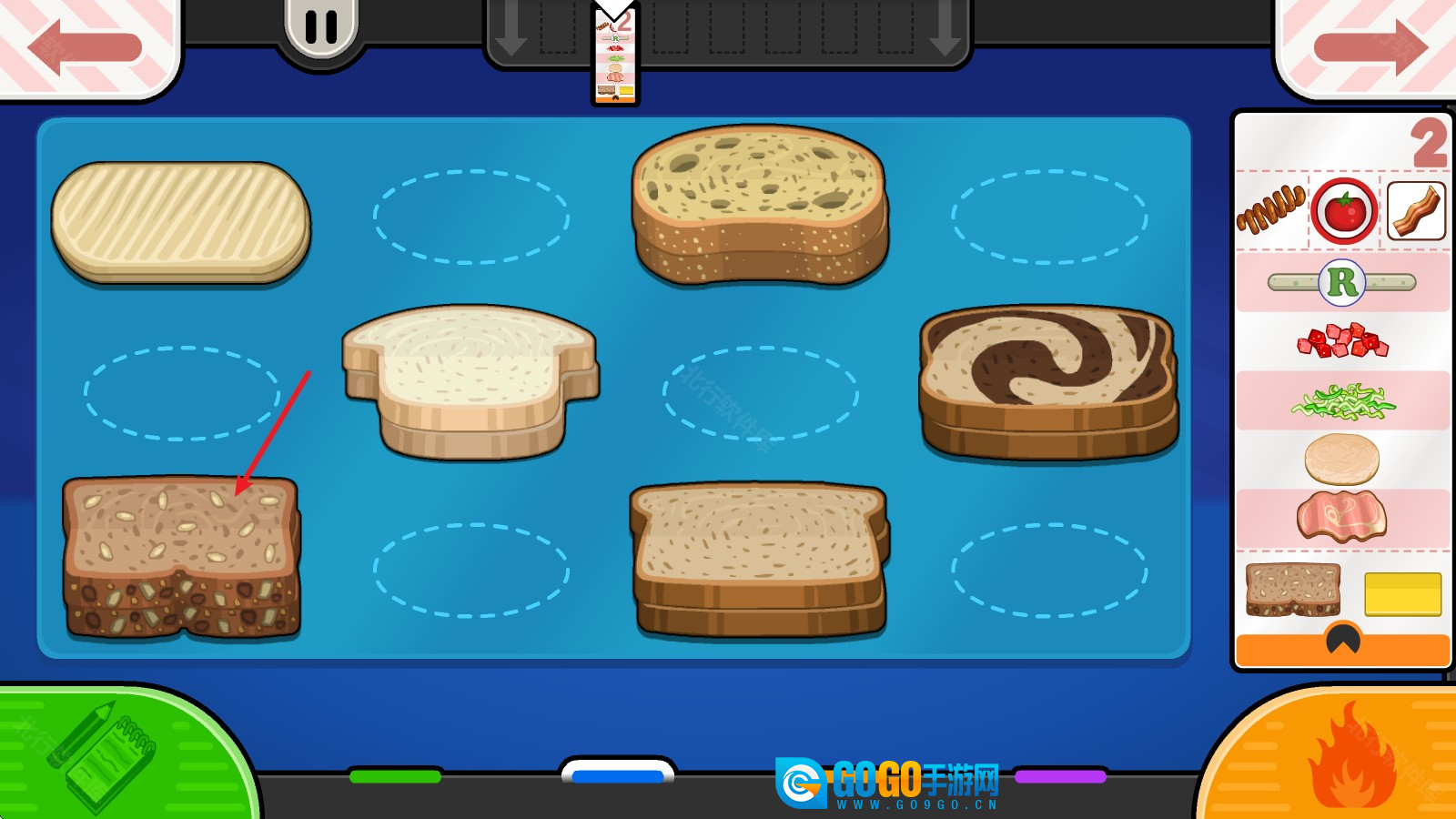 1、制作开始前,要先挑选合适的面包胚,这一步要是选错了,会对后续的评分产生影响。