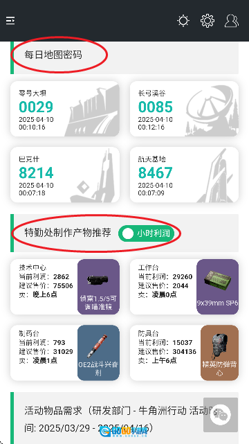 3、比如我们能够查看每日地图密码,亦或是特勤处制作产物的推荐。