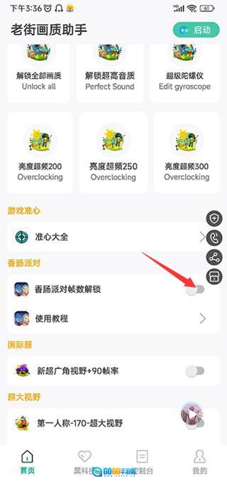 1、首先安装好香肠派对画质助手,运行游戏,之后开启香肠派对帧数悬浮窗;