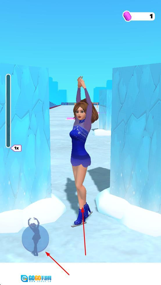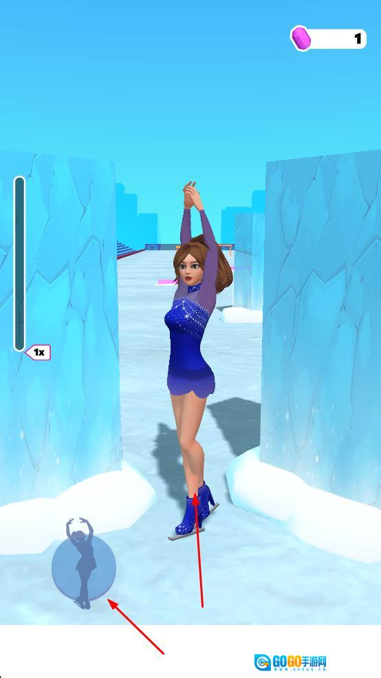 在滑行过程中会碰到各式各样的障碍物与动作指引,按照这些指引完成对应的滑冰动作,朝着关卡的终点不断推进。