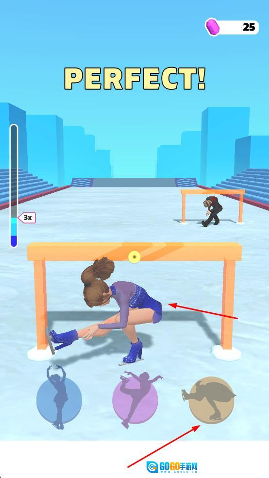 三种滑冰姿势灵活切换:这里提供了三种滑冰姿势,玩家需要根据不同关卡场景灵活切换使用,无论是快速滑行还是高难度转身,每种姿势都有对应的适用场景,合理运用这些姿势能更顺利地完成华丽的滑冰动作。
