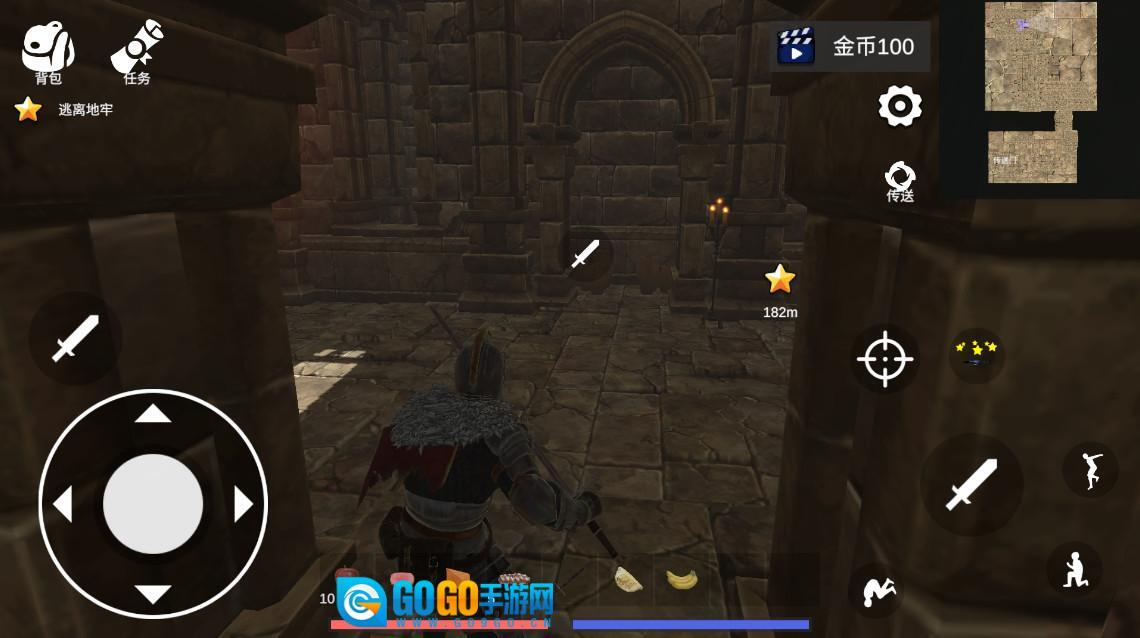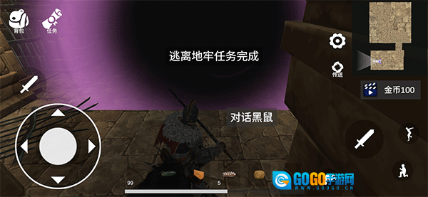 2、如该任务为逃离地牢,这时玩家可以根据前面的星星指引到目的地,也可以通过右上角地图查看目的点