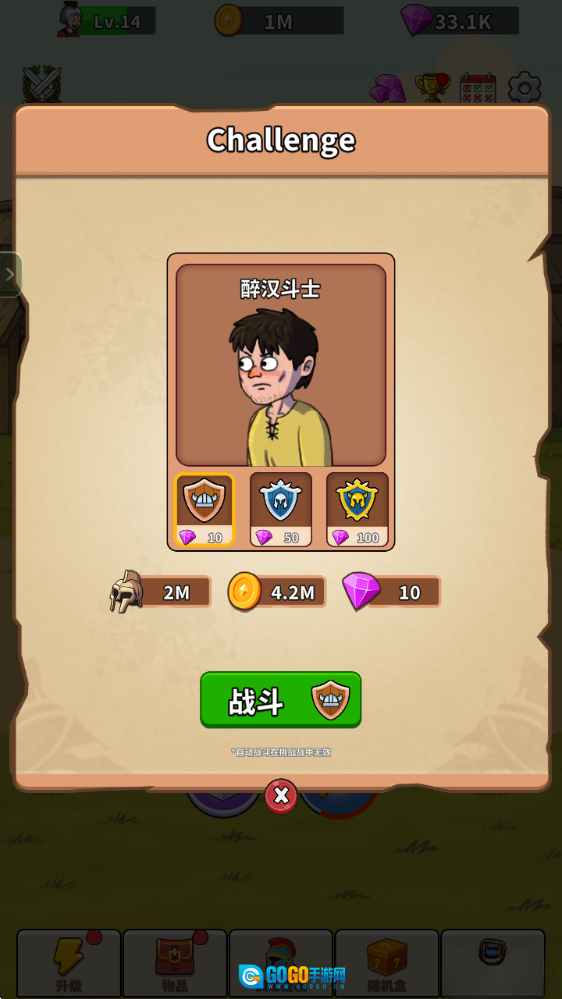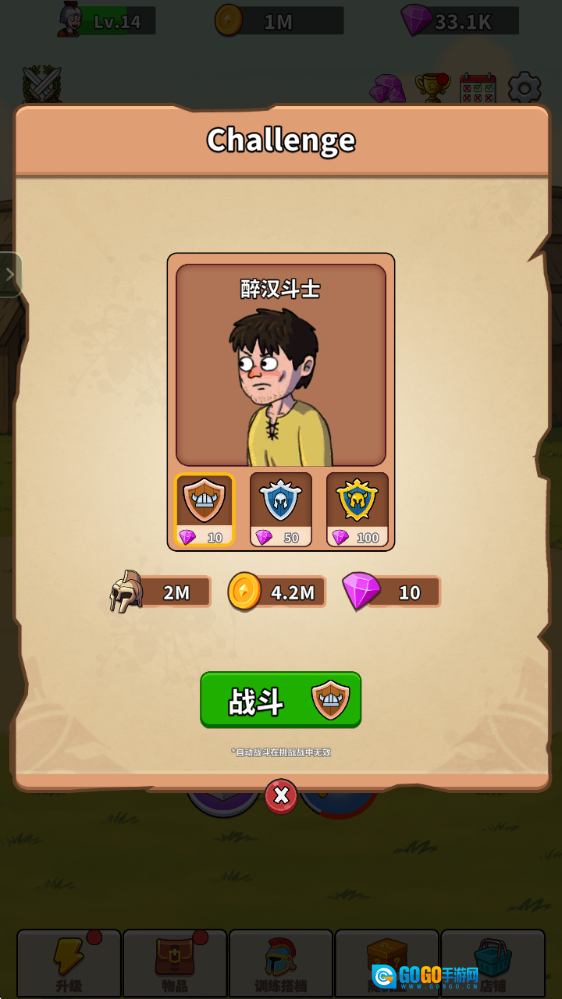 7、击败挑战对象后,我们就能够更换新的训练对象,经验和金币也会随之增加。