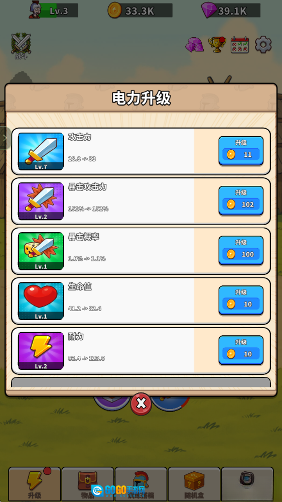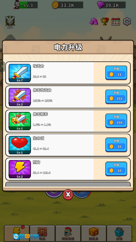 3、通过战胜对手来获得金币和经验,升级自己的各种属性。