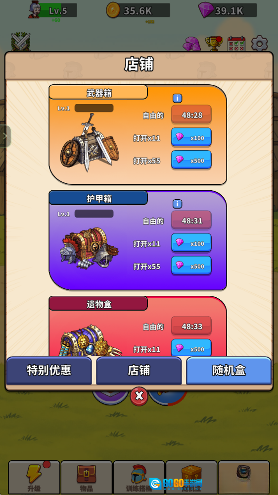 4、可以通过商店中抽取各种武器、防具。
