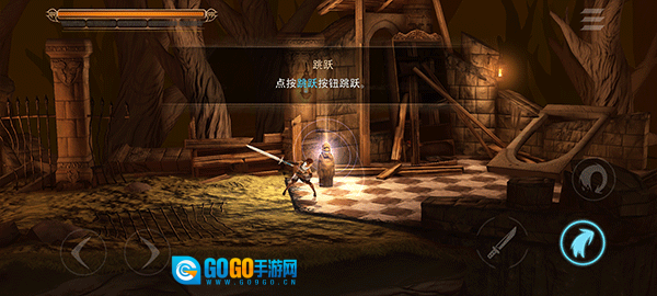 4、其整体操作与横板闯关游戏类似,左边控制移动方向,右边控制攻击、跳跃、冲刺等。