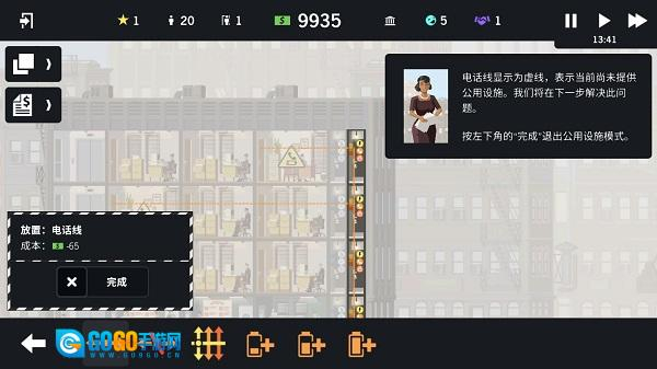 如果电话线显示为虚线,表示当前尚未提供公用设施,我们将在下一步解决此问题,现在按左下角的“完成”按钮退出公用设施模式。