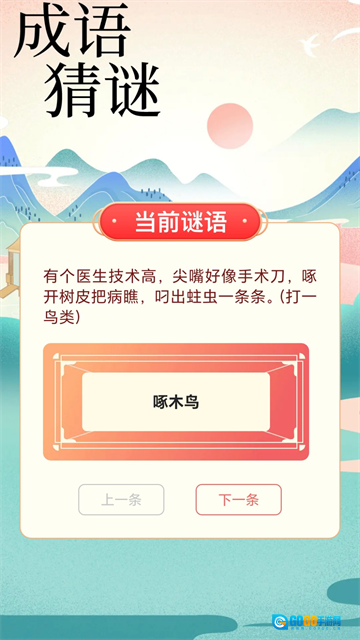 根据提示猜出正确的谜底,以此检验您的语言逻辑能力与文字敏感度。