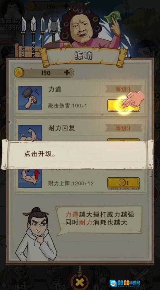 《老铁来一锤》是一款满是欢乐与热梗的模拟经营点击类游戏。在这里,玩家将化身白手起家的铁匠,从敲打出第一块铁坯起步,靠持续点击来锻造五花八门的装备与物品。游戏里融入了海量网络热梗,能带来源源不断的爆笑体验。你得用心打理自己的铁匠铺,招揽顾客、提高声望,最终要从穷困潦倒的状态逆袭,成为富甲一方的巨富,完成人生的华丽蜕变。这款游戏操作简单、容易上手,节奏也十分轻松,堪称休闲娱乐的不二之选。