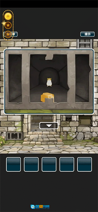 6、后面左下角有一处下水道,点击可以看到一只仓鼠,将奶酪放上去,得到仓鼠。