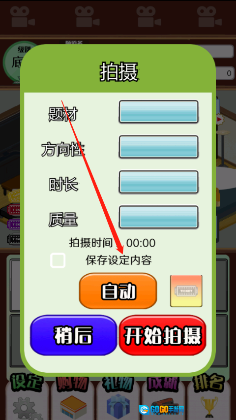 在主界面点击拍摄位,设置题材、方向性、时长、质量等参数。