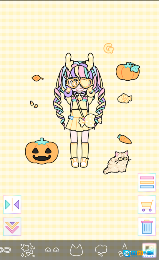 用各式各样的衣物、琳琅满目的小物件、活泼的语音气泡和多彩的字母,去装点你那软萌的女孩形象吧。