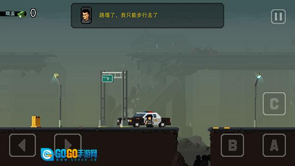 2、左下角是控制角色前进和后退的按键,我们按照指引往前探索,在道路塌方处点击【A】就可以跨过去。