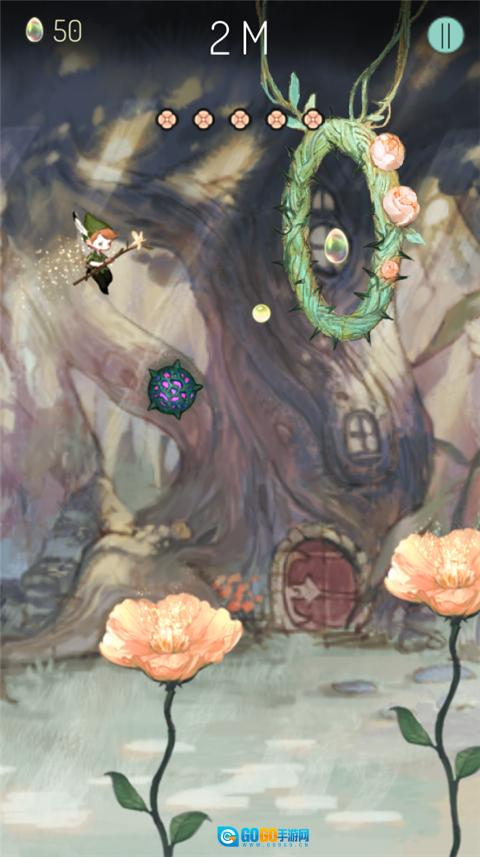 在游戏里,你将化身为春天的精灵,玩家需要操控这位精灵在花丛间向上跳跃。