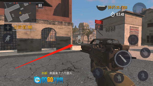 击败敌人后,地面会掉落枪械,点击屏幕右侧的手指图标即可拾取。