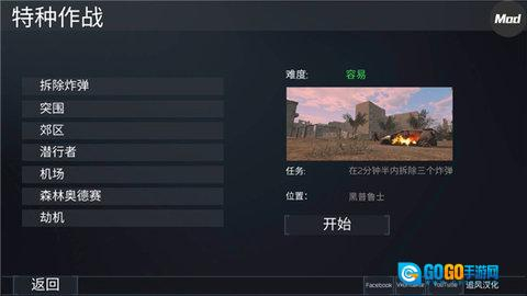 特种作战模式中,游戏难度自上而下逐级递增,初次体验的玩家建议选择游戏难度为“简单”的模式体验
