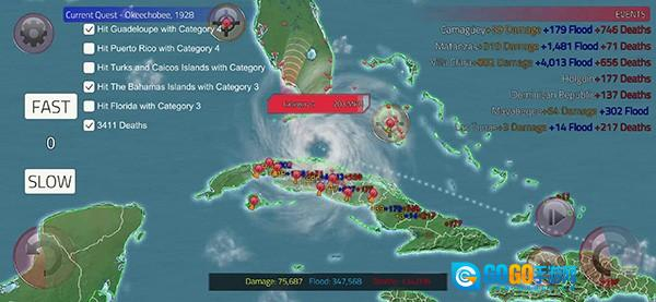支持通过简单的轮盘控制模式来自由摧毁建筑,需要合理规划台风的移动路线,以此选择要破坏的目标。