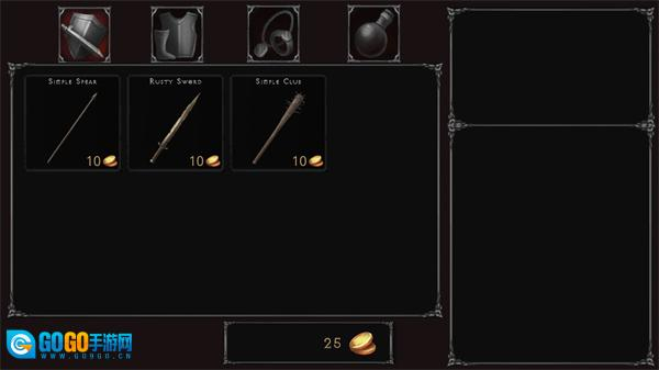 还能在商店里购置各类装备,每样装备都得花费不一样数量的金币。