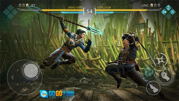 只需通过虚拟摇杆搭配拳、踢两个动作按键,就能实现跳跃、闪避、格挡、连招以及释放大招等一系列复杂操作。