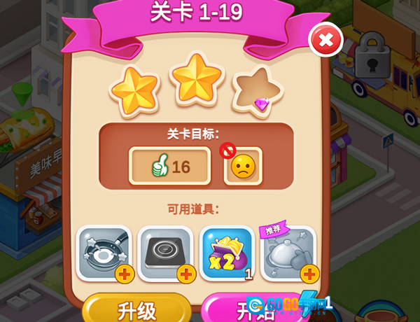 1我反复挑战了19关好多次,却始终没能拿到三星评价。拿不到三星的话,就没办法解锁新的店铺和新的菜品,这实在是件让人沮丧的事。