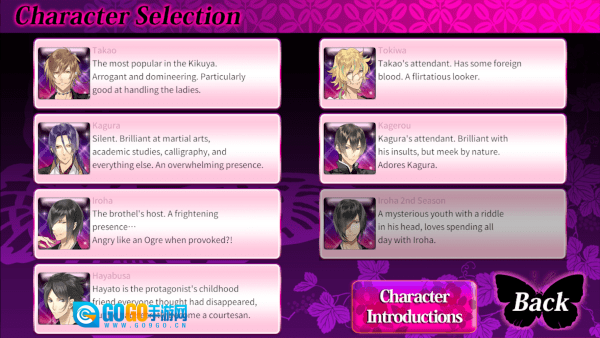 逆转吉原菊屋篇最新版是一款视觉小说,能让你尽情释放浪漫幻想。在这座岛上,孕育着与大陆截然不同的独特文化。岛屿中心有一片男人们聚集的街区……当你走进他们的世界,迷人的邂逅与动人的故事将一一上演。你的到来,是否会开启一段命中注定的缘分?