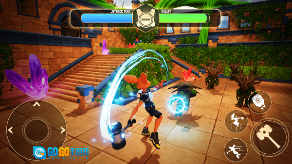 使用能量锤、等离子剑和科技爆破枪等未来武器