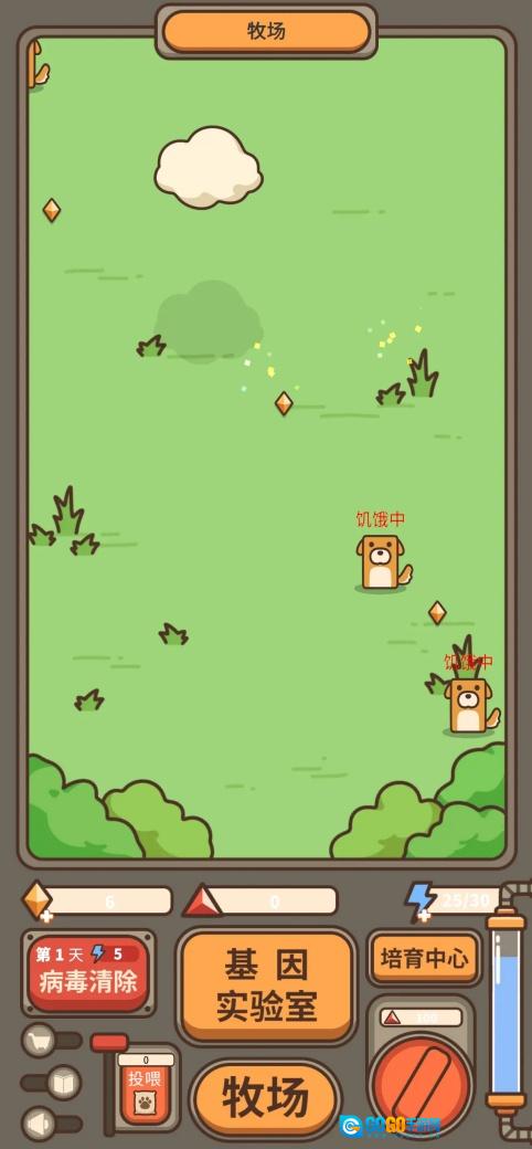 1、在牧场界面查看动物状态,及时给饥饿的动物投喂食物,以确保它们健康成长