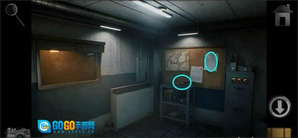 回到电梯外面的走廊,用钳子撬开右侧地面上的箱子,从中获取「灯泡」。之后再次返回控制室,依据箱子上的提示打开文件柜,取出里面的「镊子」。