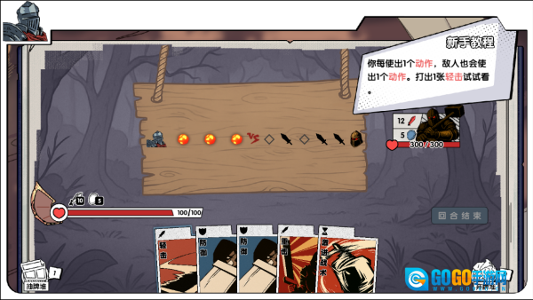 完成教学关卡的引导,熟悉牌组的组成、出牌时的攻击与防守方法,并且知晓获胜的条件。