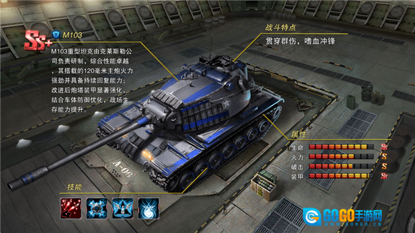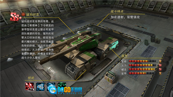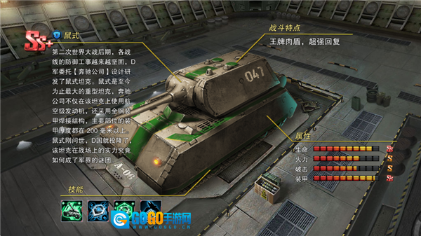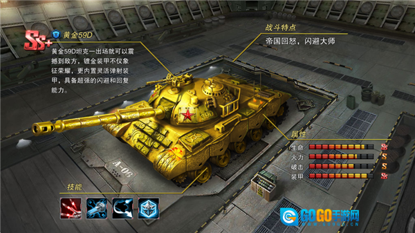 黄金59D坦克一出场就可以震撼到敌方,镀金装甲不仅象征荣耀,更灵活弹射装甲,具备超强的闪避和回复能力。