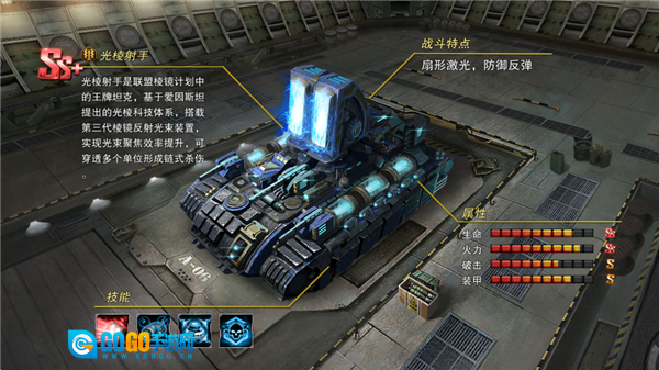 光棱射手是联盟棱镜计划中的王牌坦克,基于爱因斯坦提出的光棱科技体系,搭载第三代棱镜反射光束装置,实现光束聚焦效率提升,可穿透多个单位形成链式杀伤。