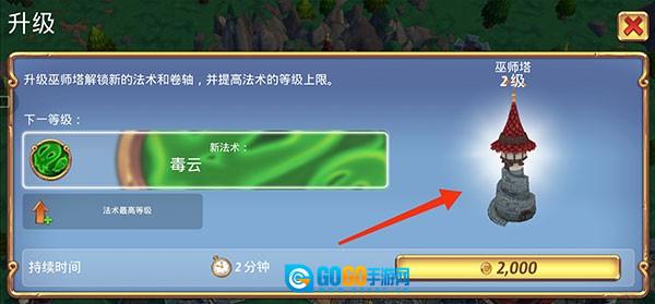接下来我们抵达了巫师塔,对巫师塔进行升级后,便能解锁法术,进而完成对应的任务。