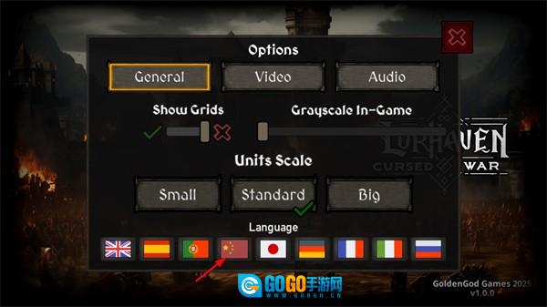 若想让游戏显示中文,只需找到设置页面里标注着“language”的选项,之后在对应的选择界面中点击中国国旗的图标即可完成语言切换。
