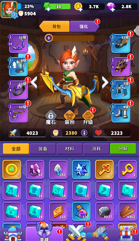 无论你是选择肉盾流还是暴击流,都要确定战斗流派并升级强化对应装备。如果后期打腻了想试试别的打法还可以还原/分解装备获取强化石,重新装备加点强化。
