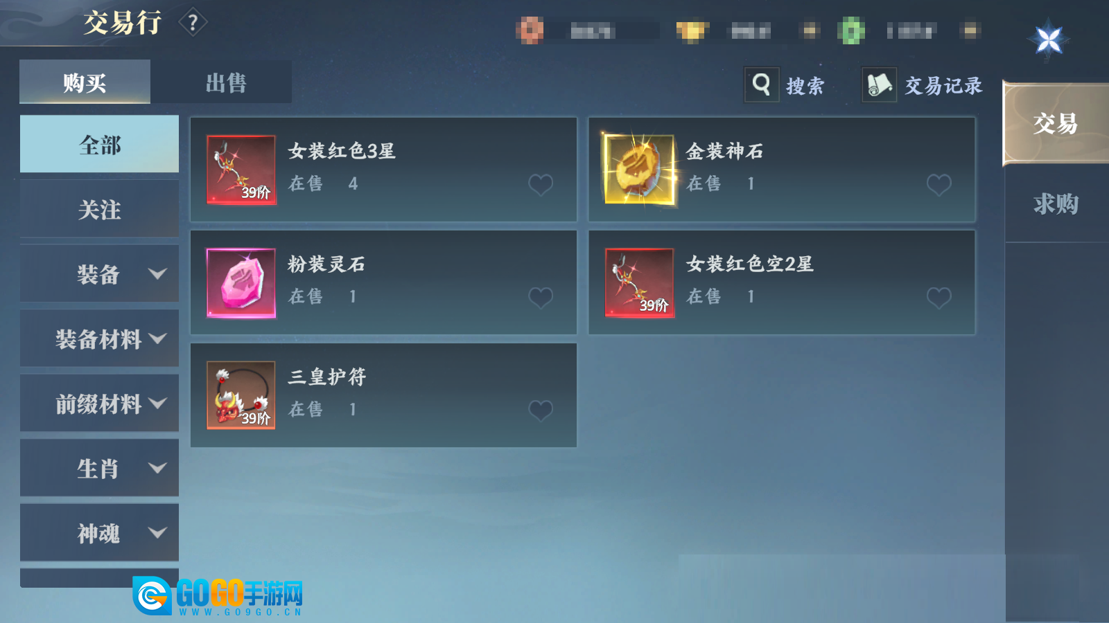 上仙们可点击游戏内的【交易】入口,进入交易行挑选并购买所需的装备或材料。