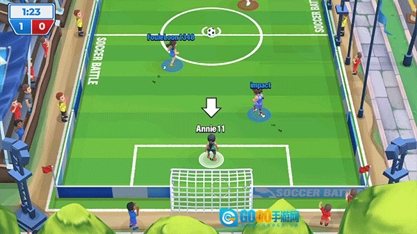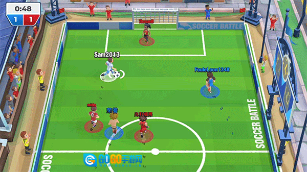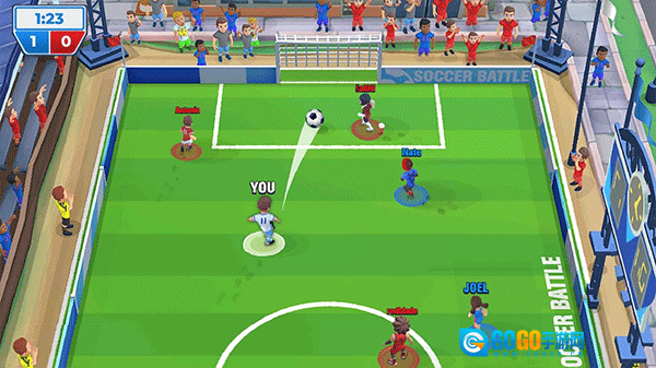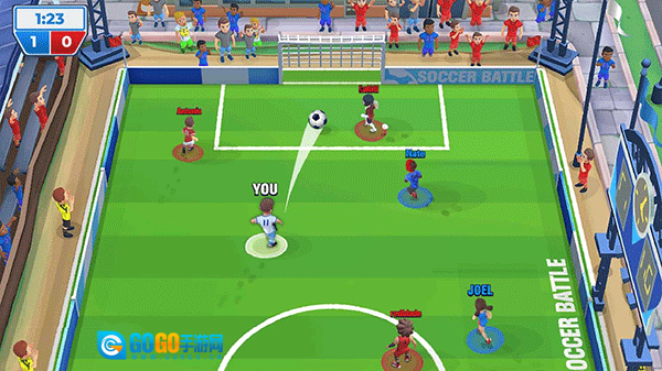 这款名为Soccer Battle的足球主题竞技游戏,采用Q萌画风与简易操作,让足球爱好者能轻松上手,化身球场小将。进入游戏后,玩家将操控不同球员,通过精准射门与团队配合攻破对方球门,完成比赛目标。游戏还支持联机对战,可与好友实时竞技,在绿茵场上共享足球乐趣。