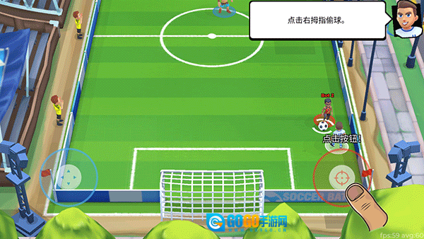 靠近足球后点击右边按钮偷下对手脚下的足球