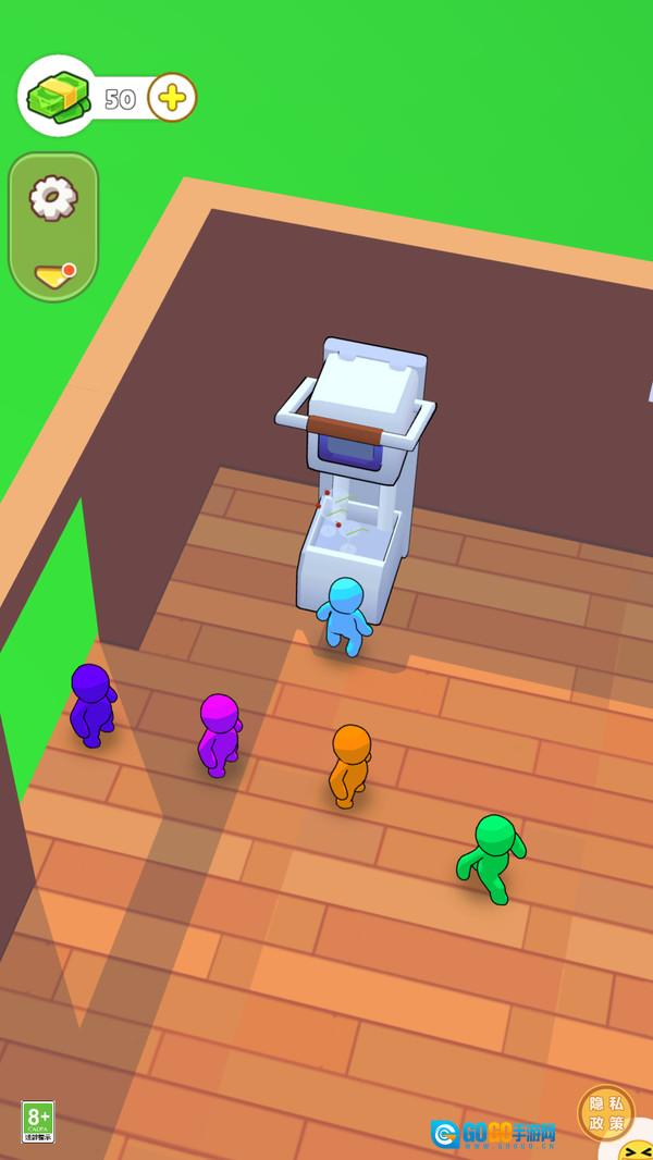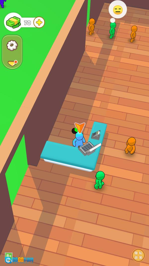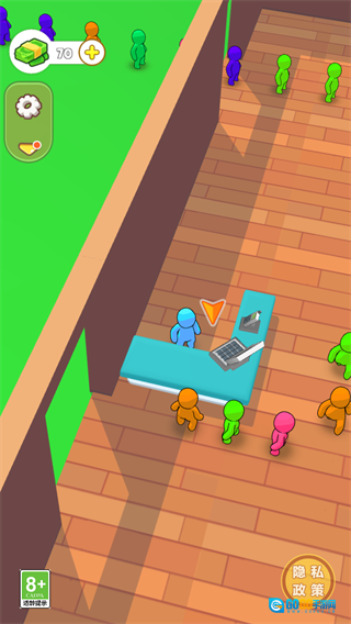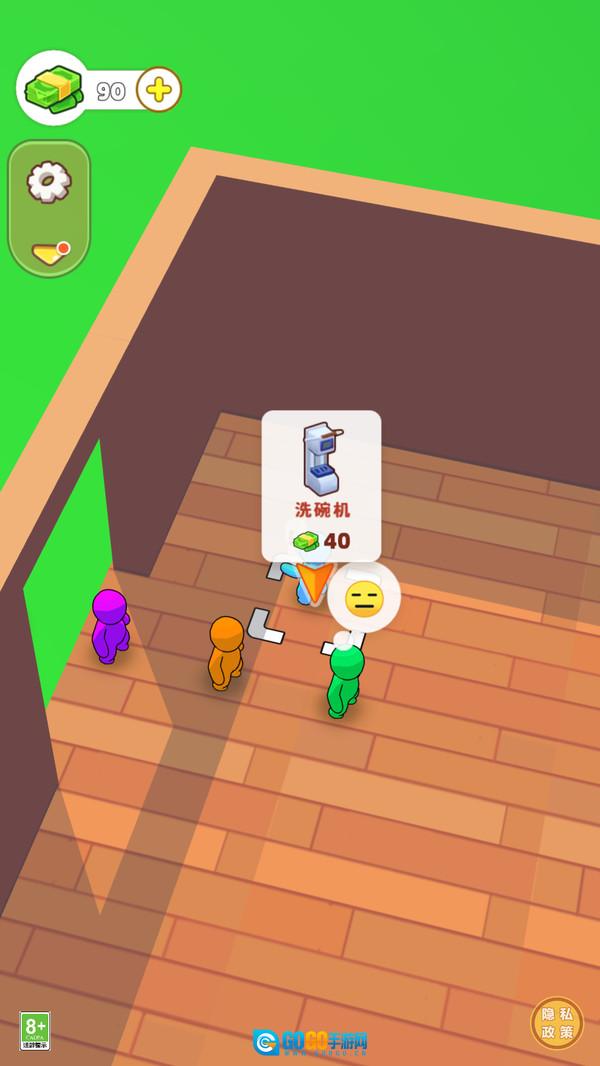 制作完成后,操控角色前往收银台,持续收取售卖所得的利润,之后就能进一步扩大生产规模,为更多顾客提供服务。