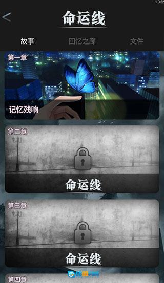 4、左上角的按钮可以选择命运线故事的章节,目前已有四章,第一章剧情过后才可以解锁下一章。