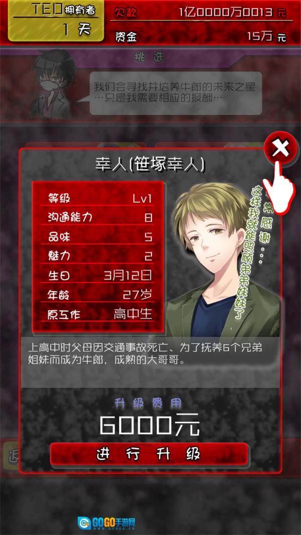 5、每次店面升级,收入与疲劳都会翻倍,牛郎数量务必跟上。
