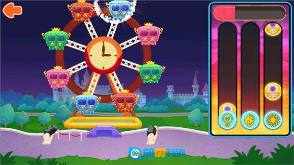 5、快来用音乐游戏为摩天轮点亮浪漫绚烂的灯光与烟花吧~当下方的下落块和圆形图标重合的瞬间,马上点击对应的图标试试看吧!