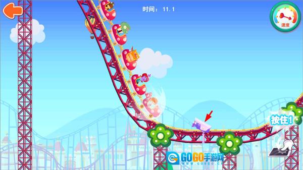 3、当过山车驶入最惊险的下坡段时,不妨点击一下屏幕,哇~过山车瞬间加速,简直刺激到不行!在过山车风驰电掣的行进过程中,你既能看到绚烂绽放的烟花,还会经过高速摄像头。所以结束后可千万别忘记查看照片哦,每一张照片都是一段超难忘的回忆呢~